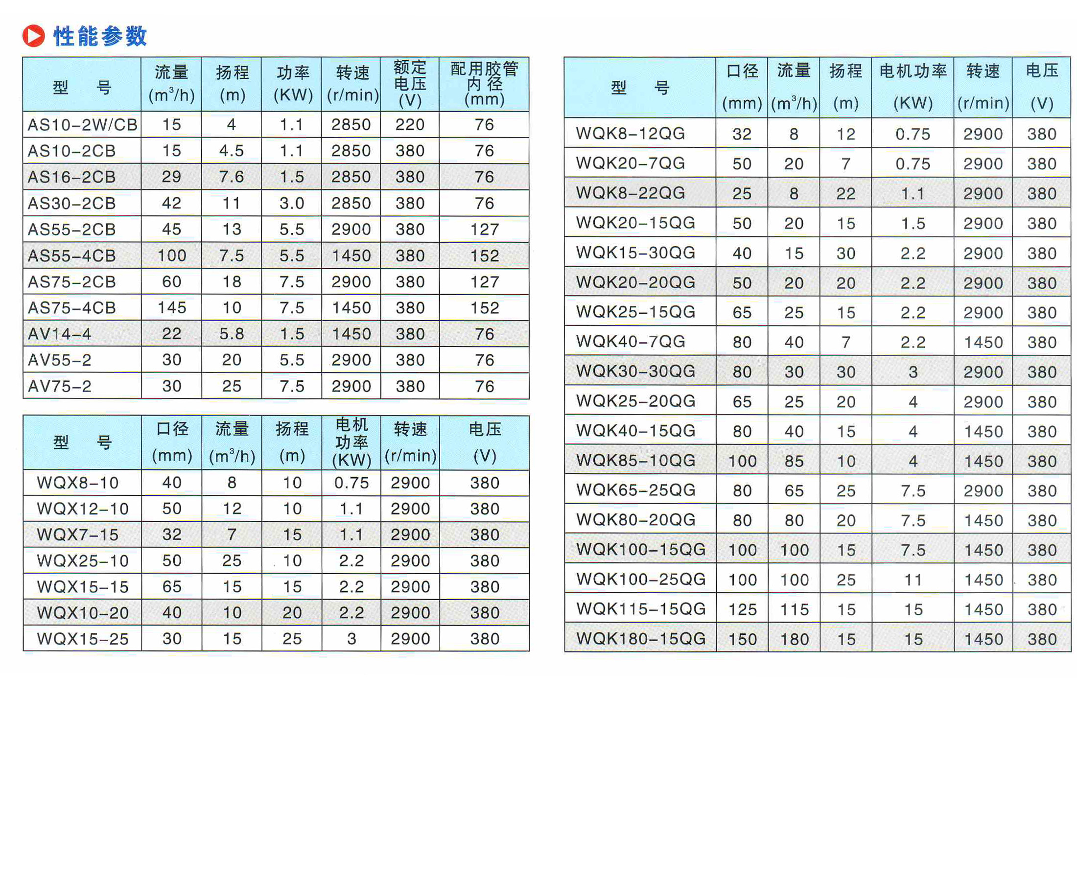 水泵參數說明